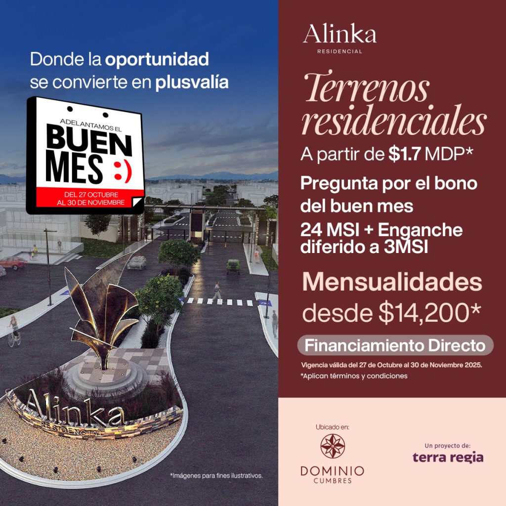 Alinka es un proyecto residencial diseñado para brindarte tranquilidad y confort en un entorno natural y privilegiado, ideal para invertir o construir la casa que deseas.